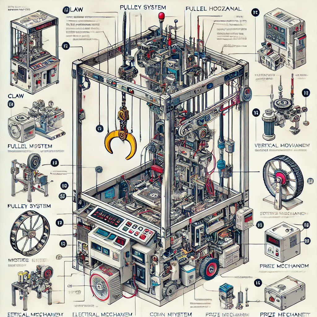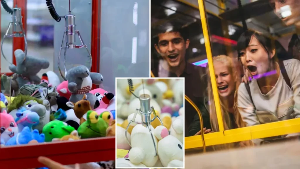 A claw machine is an arcade game where players try to grab prizes using a mechanical claw.